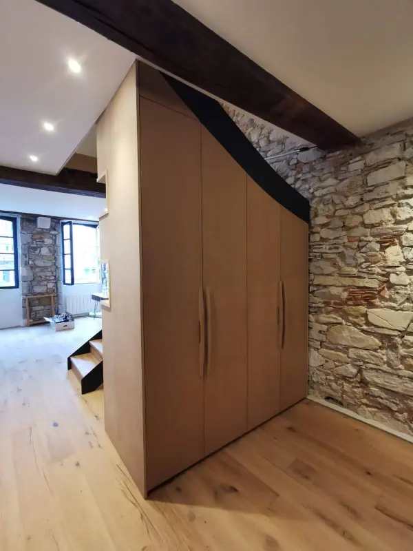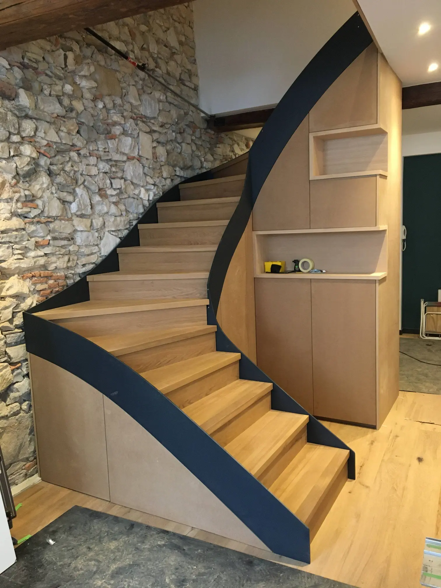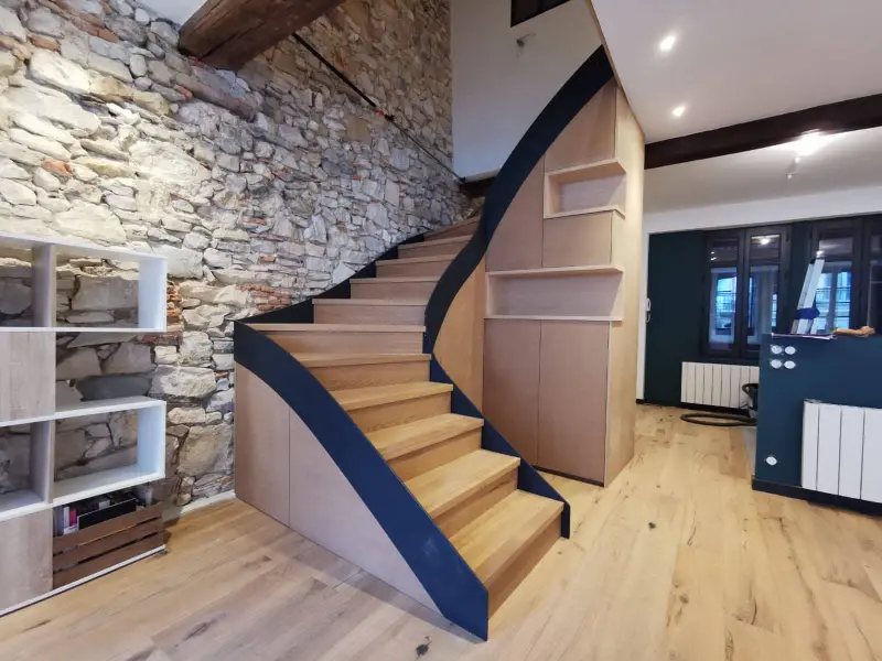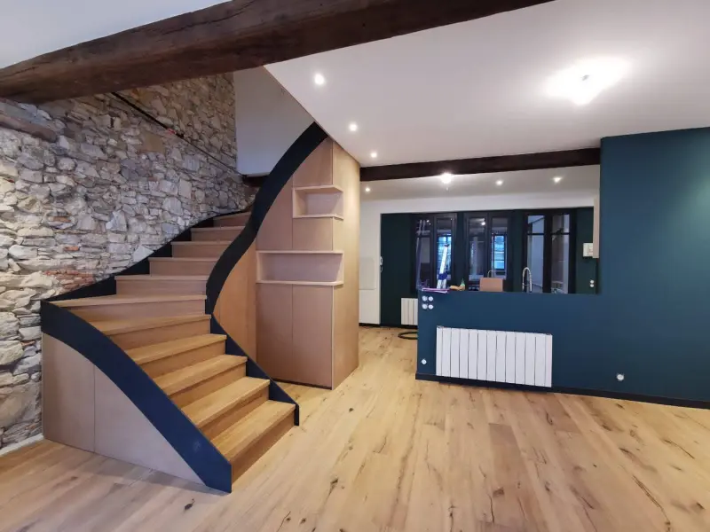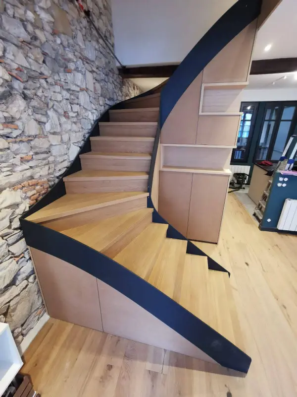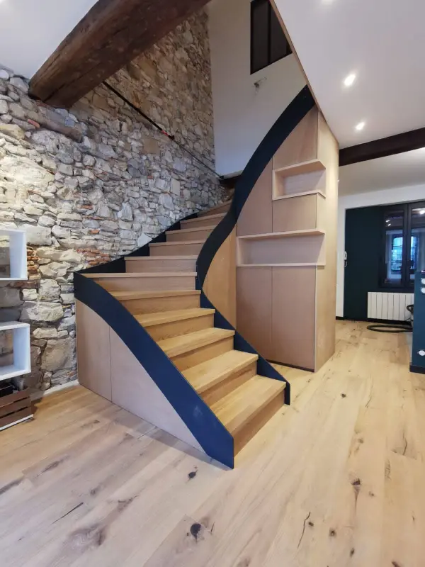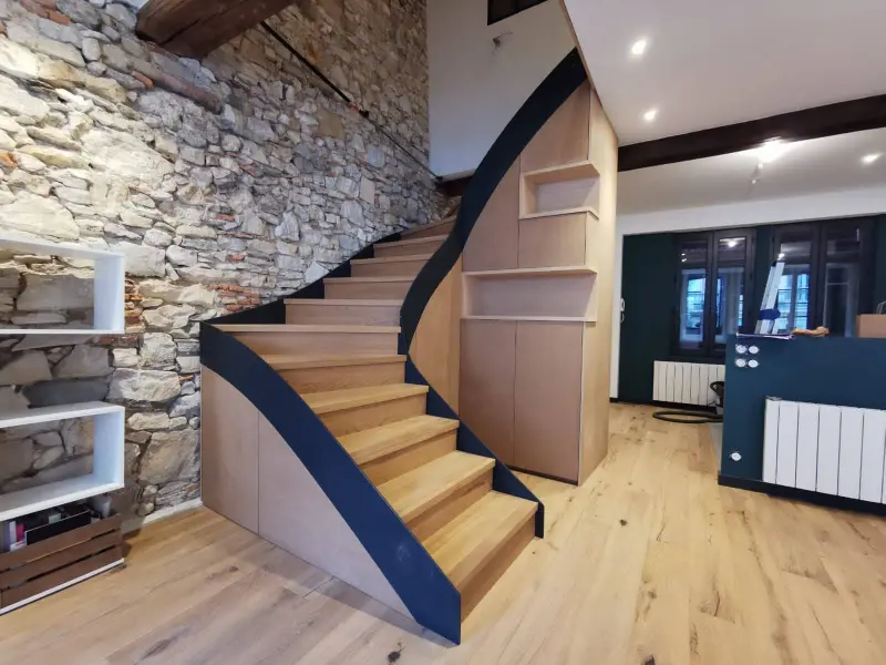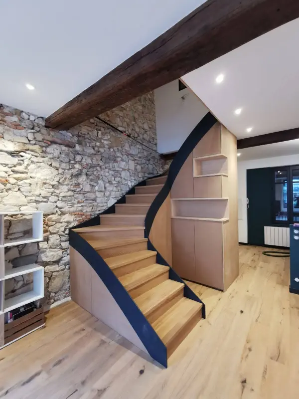 Nous avons récemment accompagné nos clients dans l’optimisation d’un appartement situé en plein centre-ville de Bayonne, avec un défi bien précis : aménager intelligemment l’espace sous un escalier métallique, tout en conservant l’esthétique et la fluidité de circulation