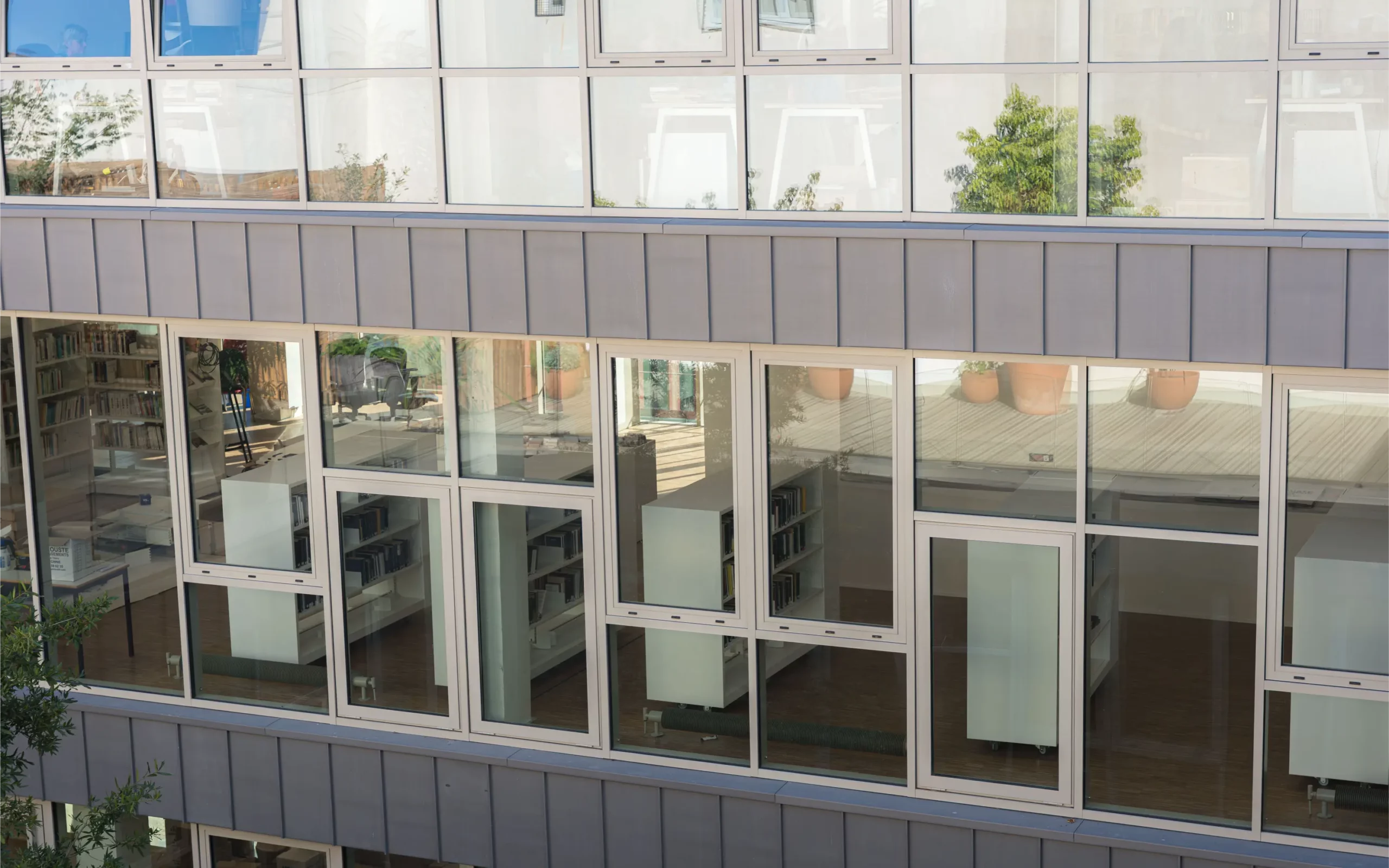 Pour la Médiathèque de Bayonne, Darrieumerlou a réalisé l’habillage complet de la façade et de la toiture sur 400 m².