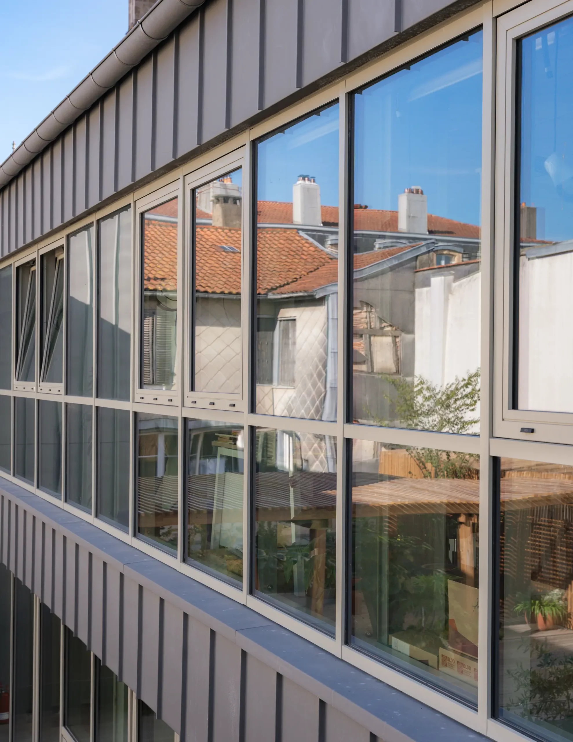 Nous avons conçu et usiné dans notre atelier de Bardos la couverture en aluminium et en zinc, avec un système à joint debout pour assurer durabilité et modernité.