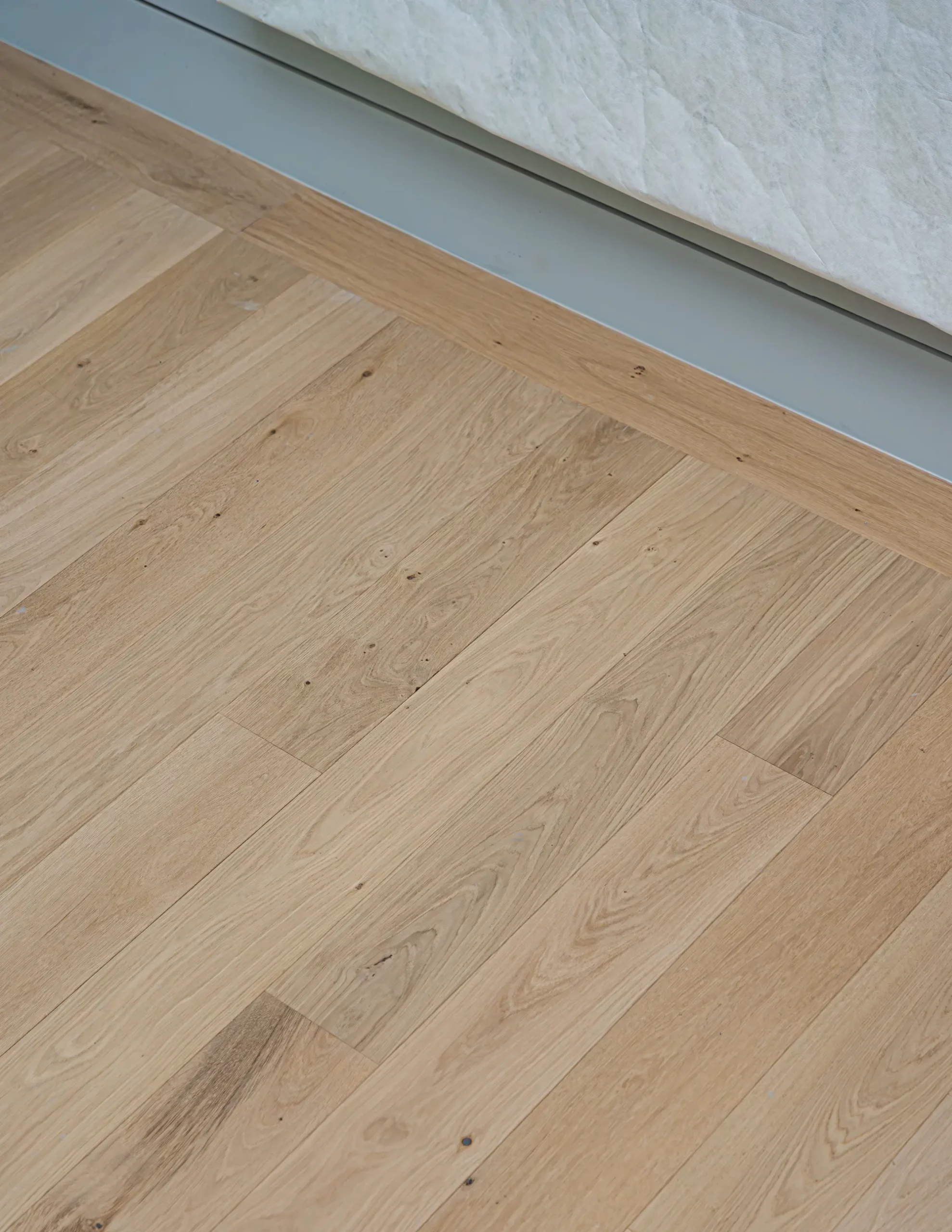 Nous avons procédé à la dépose de 2 000 m² de parquet en chêne massif de 20 mm, assemblé en point de Hongrie et en parquet contrecollé, avec une finition vernis mat. Chaque lame du parquet a été usinée sur mesure dans notre atelier de Bardos à partir de bois massif puis posée sur une structure IPN, garantissant solidité et durabilité dans le temps.