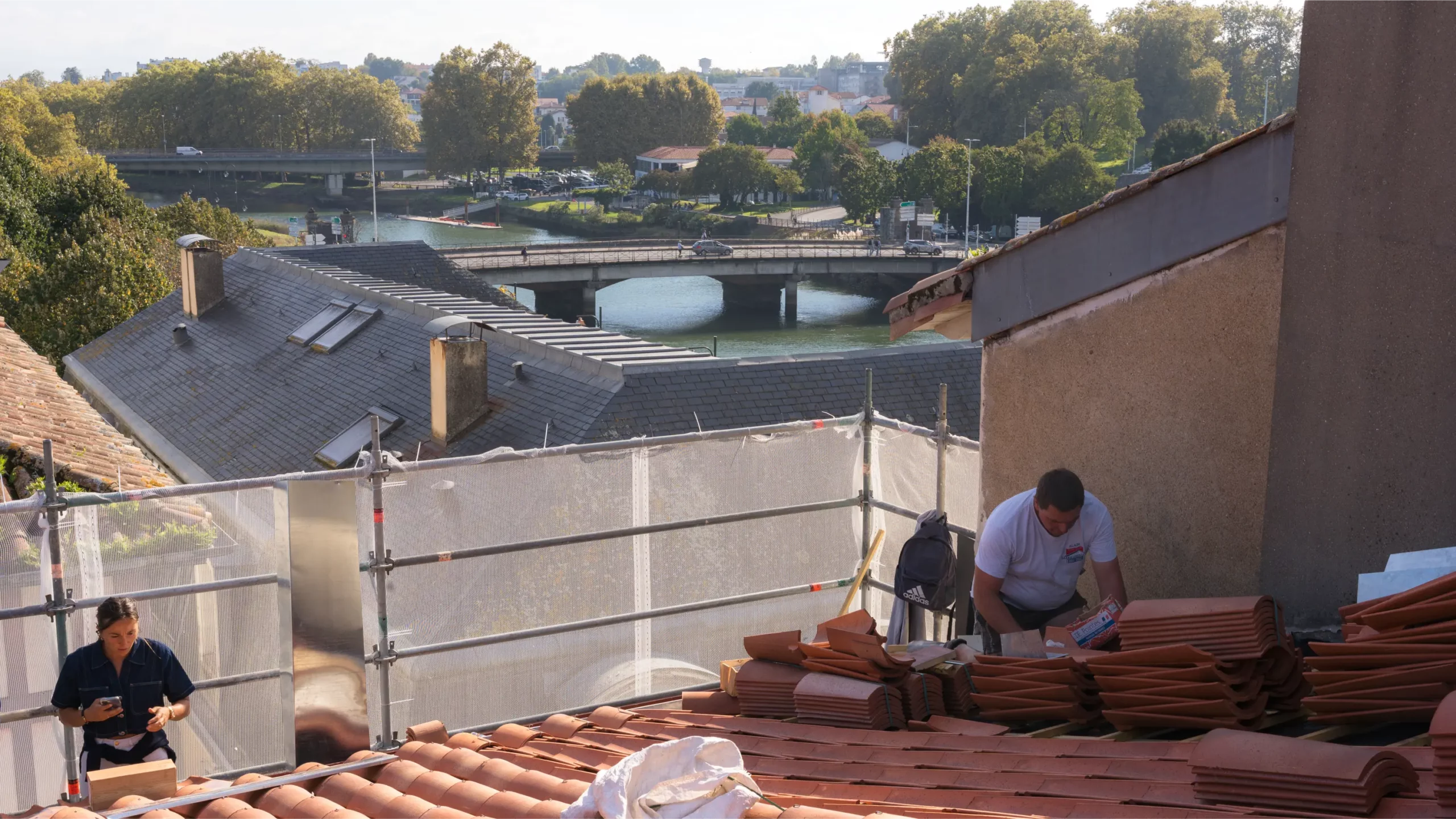 Le chantier comprenait la toiture et la façade, particulièrement abîmée avec ses poutres en bois typiques du patrimoine basque.